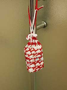 Tvålpåsen hänger inne i duschen eller över badkaret.