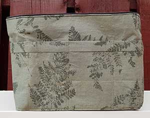 Utsidan är mönstrad och insidan har ett enfärgat tyg i matchande färg.