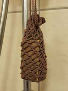 Tvålen blir fuktig när vattnet kommer på påsen och kan då användas på vanligt sätt där den hänger.
