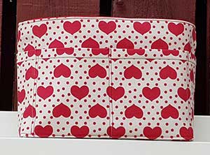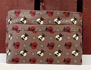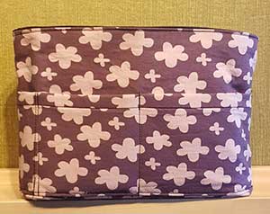 Utsidan är mönstrad och insidan har ett enfärgat tyg i matchande färg.